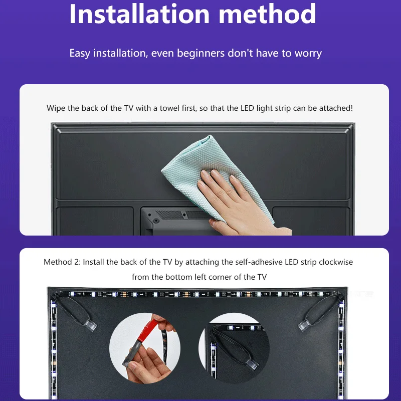 The peel-and-stick LED strips fit any TV size, while the spill-proof design ensures longevity.