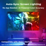 Lights instantly match the colors of your screen, creating an immersive ambient glow that reacts in real time to whatever you’re watching or playing.