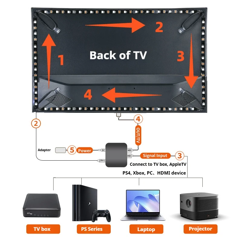 Elevate your TV experience with the HDMI Sync TV Backlight, designed to transform your space into a cinematic hub or gaming arena.
