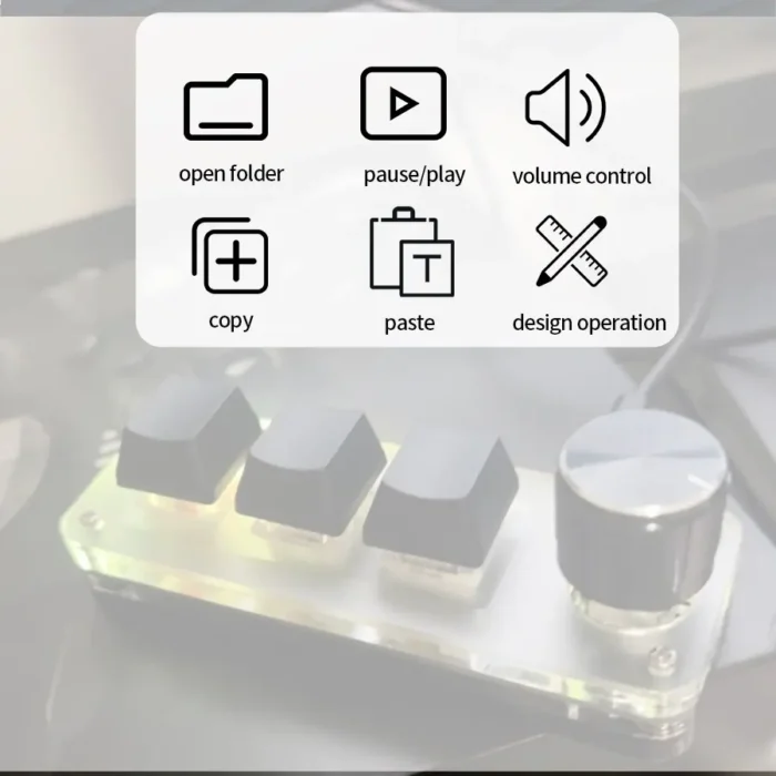 This is a mini keyboard with custom functions, used in design, stock, office, game, music, media, industrial control, testing and other fields.